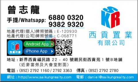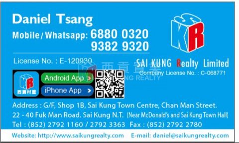 | Contact: | 西貢置業: 93829320 DANIEL: 93829320 曾生: 93829320 |